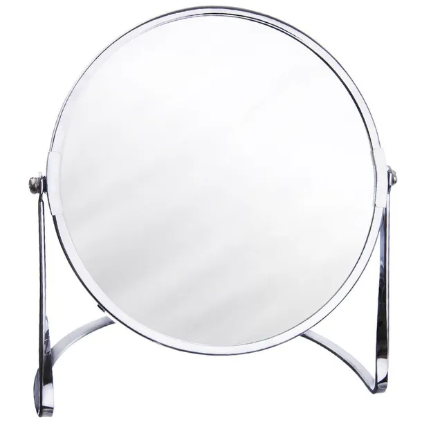 Dwustronne lusterko na stojaku. Lusterko możemy postawić na blacie lub stole, dzięki czemu będziemy mogli wygodnie wykonywać przy nim makijaż lub proste zabiegi kosmetyczne. Jest świetnym pomysłem na prezent dla każdej kobiety. Modne obramowanie w kolorze srebrnym sprawi, że idealnie pasuje do każdego wnętrza. Oryginalny produkt czeskiej marki Orion. Wyprodukowano zgodnie z europejskimi standardami.