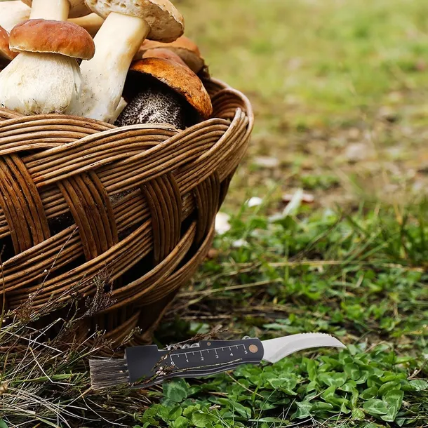 ✅ PRZYDATNY - Nożyk do grzybów jest wyposażony w specjalnie wyprofilowane ostrze o długości 5,5 cm. Ostrze umożliwia chwytanie grzybów i ich wstępne oczyszczanie. Pędzelek sprawdzi się do oczyszczania grzybów z piasku czy ziemi. Dodatkowo, na rękojeści umieszczona została miarka od 1 do 5 cm, która pozwala ocenić średnicę zebranych okazów.